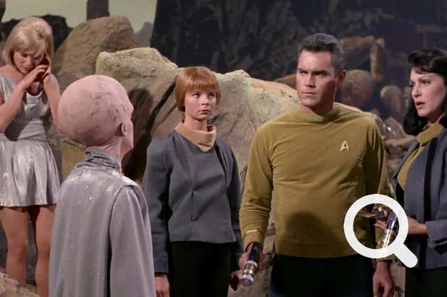 After a quick Short Trek in which we meet a young ensign reporting to his new ship, we reach the very first Star Trek episode produced: The Cage, dating from 1964-65. Rejected by NBC for being "too cerebral," studio owner Lucille Ball convinced the network to give the show another chance at a pilot. While much of The Cage’s footage is reused in a later episode, "The Menagerie," we recommend that you don't skip either one. The character of Captain Pike becomes highly significant shortly, and both episodes offer valuable insights into the friendship between him and Spock.