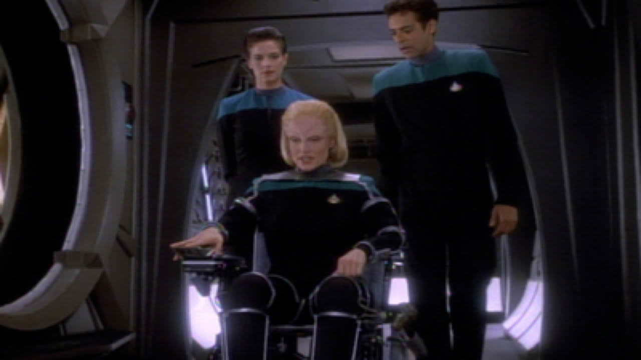 Bashir falls in love with a wheelchair-bound woman, who is unable to walk in Deep Space Nine's level of gravity.