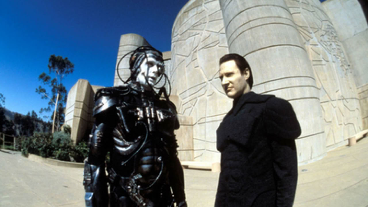 Picard, Troi, and Geordi are held prisoner by Data, who has left the Enterprise to join his evil brother Lore as leaders of the Borg.