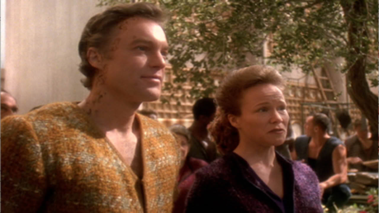 Jadzia rekindles a relationship when she meets the current host of the wife of one Dax's past hosts, Torias.