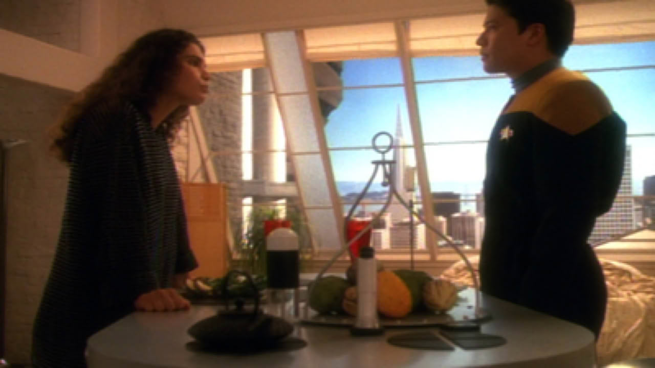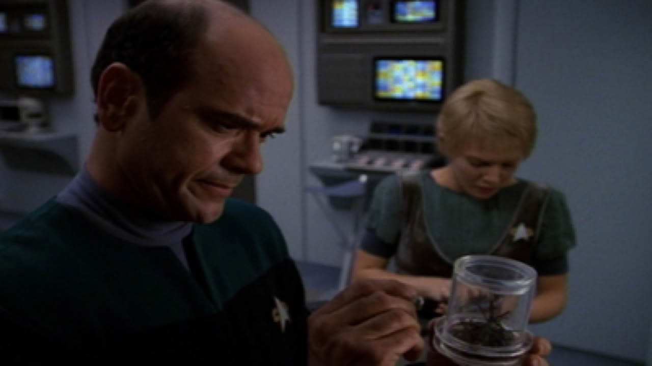 Jadzia rekindles a relationship when she meets the current host of the wife of one Dax's past hosts, Torias.