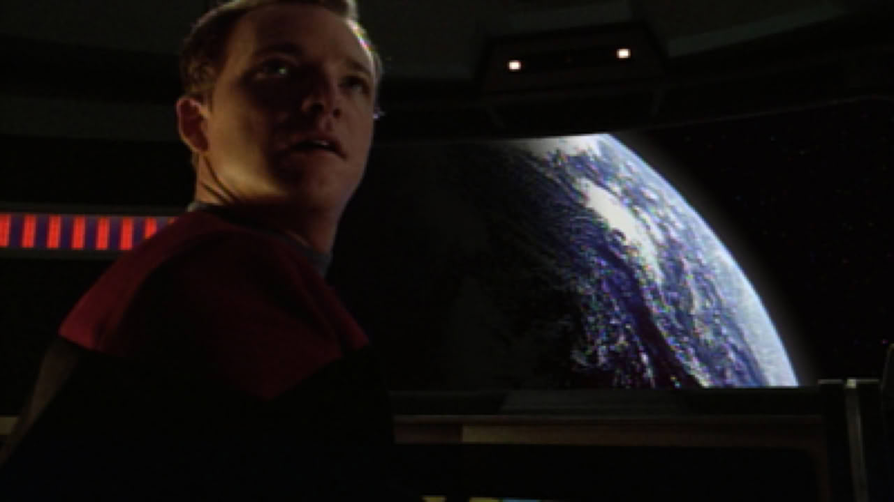 Harry Kim arises one morning to find he is back in San Francisco on Earth with his girlfriend Libby. He learns that in this reality, he never served aboard Voyager, but instead works in Starship Design at Starfleet Headquarters.
