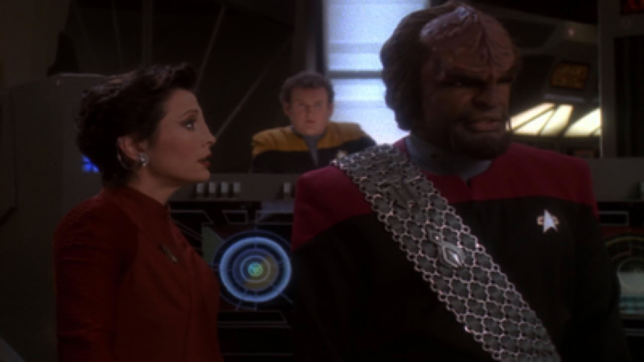 Jadzia, Worf and Kor hunt for the ancient Sword of Kahless, which is supposed to unite the Klingon Empire