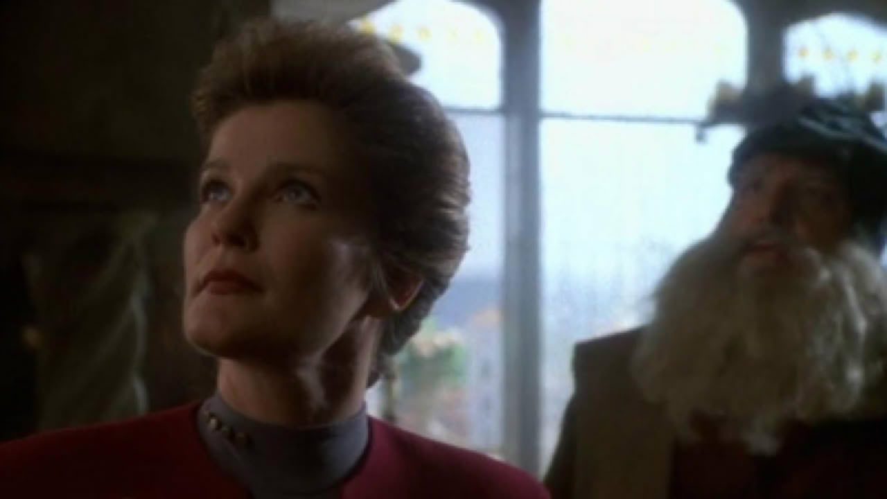 Captain Janeway repeatedly dies after she and Chakotay crash into a planet in what appears to be a time loop. Soon, her deceased father appears and tells her that she is dead and must accept her situation and move on.